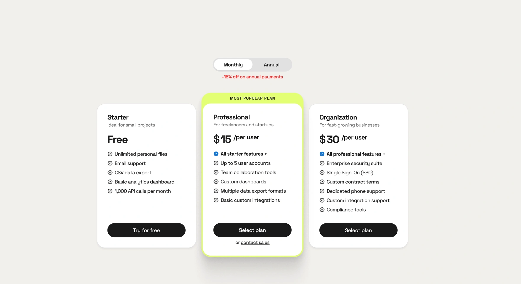 Use colour theory to draw attention to the pricing tier you want to promote, like Pipedrive and Notion do by using a contrasting button for their ‘Plus’ plan or a ‘Popular’ tag. Highlighting the most recommended or popular option helps guide users to a decision.