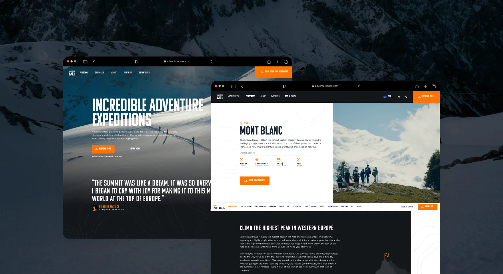 Let me show you how we applied this thinking to Adventure Base, an adventure holiday company offering trips like climbing Mont Blanc. While this is an older project of ours, it continues to perform exceptionally well because it systematically addresses customer concerns.